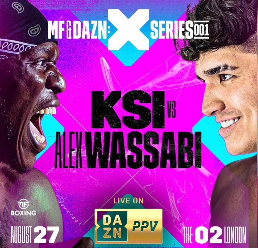 The unbeaten British phenom KSI looks to avenge his brother’s loss against long-time rival and American YouTube sensation Alex Wassabi at the O2 Arena in London, England, on Saturday August 27th. This main event and a full card of fights presented as the “X Series powered by Misfits Boxing” will be shown live in New York City at Hoops Cabaret. The feature match will start at approximately 5pm, New York time.