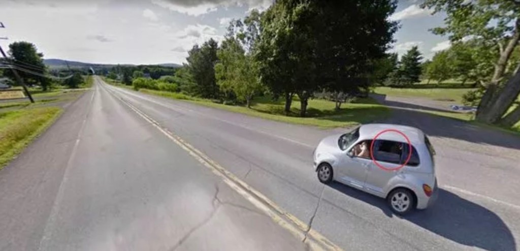 Crystal Patterson was using the app to see where a garage sale would be taking place in Mapleton, Maine, and as she navigated to the address, she noticed something very peculiar in a car driving in the area. It seemed like the driver was naked, so she zoomed in on it to understand what exactly was going on, but it actually only made the scene more confusing. There was an extra-terrestrial being getting driven around in the PT Cruiser.