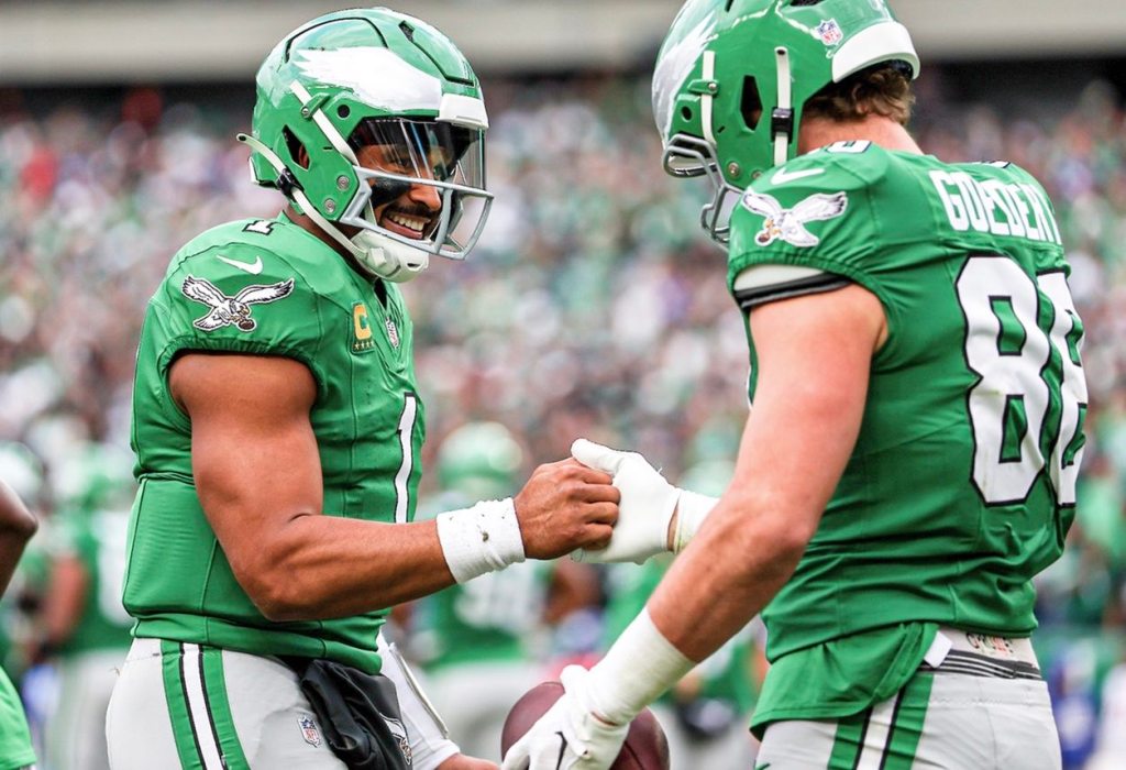 Hurts finished an efficient 15 of 20 for 179 yards and four touchdowns, spreading the ball to five different receivers. Barkley was unstoppable, totaling 150 rushing yards and 24 receiving yards with two total scores.
